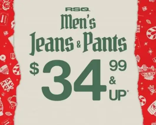 Shop in store and get RSQ men's jeans & pants $34.99 & up for a limited time.